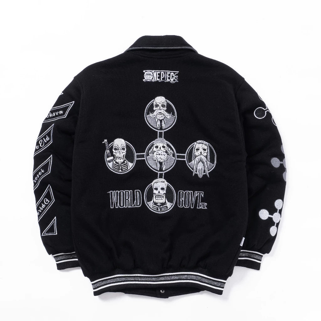 Rule the shadows with the Gorosei Black Varsity Jacket, inspired by the mysterious Five Elders from the One Piece universe. This jacket isn’t just anime merch—it’s elite Japanese streetwear with a dark twist for real fans who want to stand out.